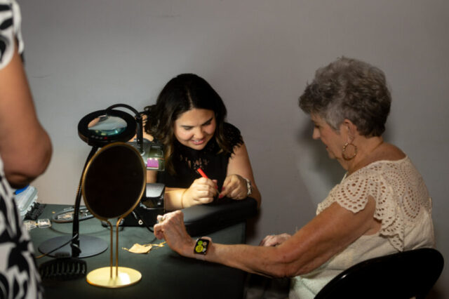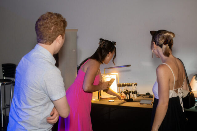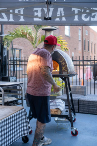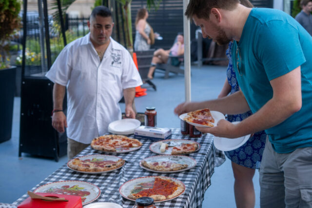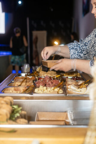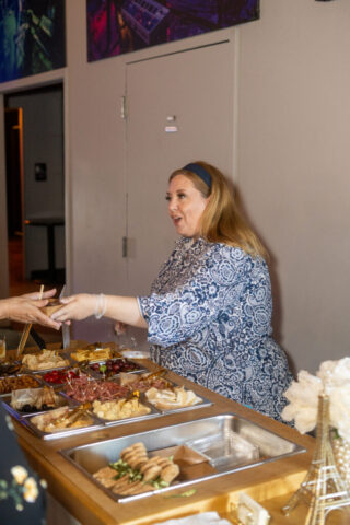 Initially planned as a patio party, we moved the shindig inside due to the heat. Once the cool wave of Putnam Place’s AC hit attendees, they had the chance to sample Sidecap Hard Cold Brew, make their own charcuterie box at Date & Olive’s charcuterie bar, fill up on dinner from West Ave Chicken and West Ave Pizza (the pizza oven was crankin’ outside!), get permanent jewelry from Abby at Lakuna Links, look into their future with tarot reader Chrissy Manolakis, and enter a raffle to win gift cards from local businesses.