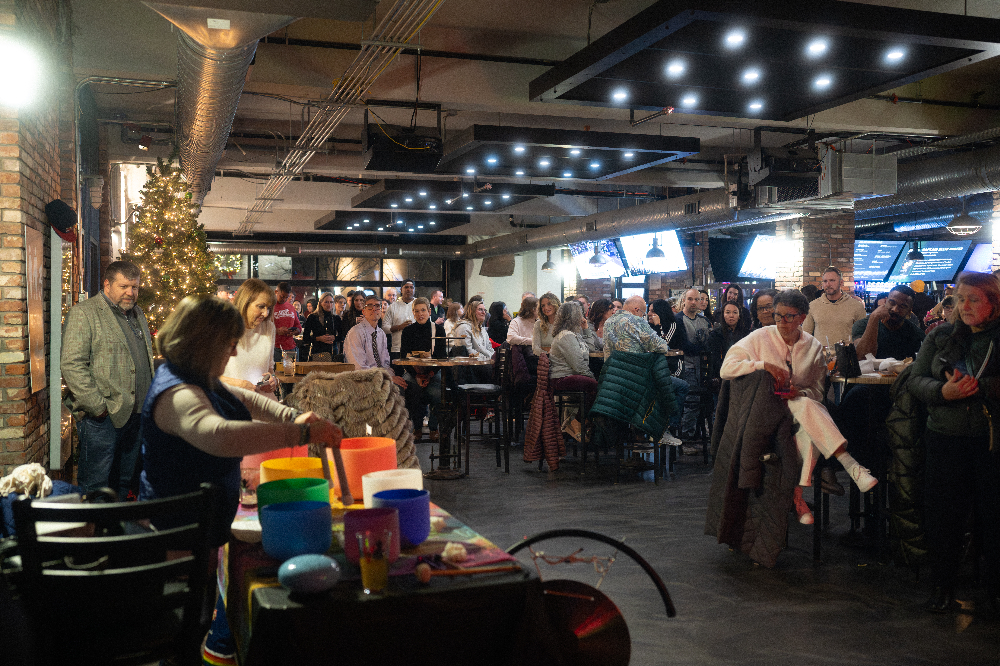 A little after 7pm, DJ Prez paused the pump-up music for the program, which kicked off with a crystal bowl sound bath performed by Tina Galante of Kristall Gräshoppa. Then, TV anchor turned health coach Benita Zahn took the stage to introduce the Top Trainers, and we picked the winners of our door prizes (which included giveaways from Spa Mirbeau, KOS Sauna, Saratoga Sweat, Copake Country Club, Sowilo Retreat, and more). On the way out the door, attendees made sure to grab a copy of the new themed issue, which has become an instant favorite in the 518.