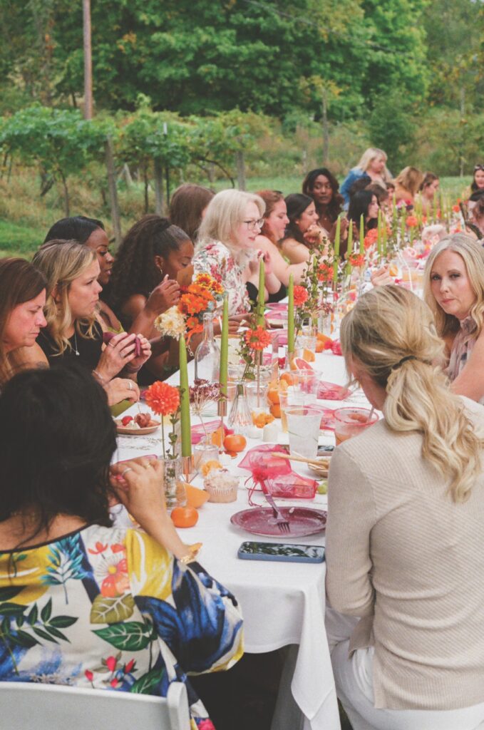 The first Girls Upstate event was a potluck in the basement apartment of one of Hinch’s friends in the fall of 2022. Hinch cooked trays of pasta and meatballs and expected a small crowd for a night of cookie decorating. Forty women showed up. “I was like, ‘Well, this is a thing,’” she says.